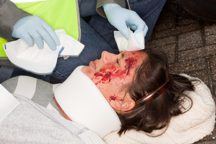 Do Not Attempt to remove any articles off of the patient and unless necessary, do not move the patient. Cover the wound if blood is immense; however, do not apply any pressure for any head injuries (lightly cover the wound). Call 911 and perform CPR if the patient is without a pulse and unconscious or non-responsive.